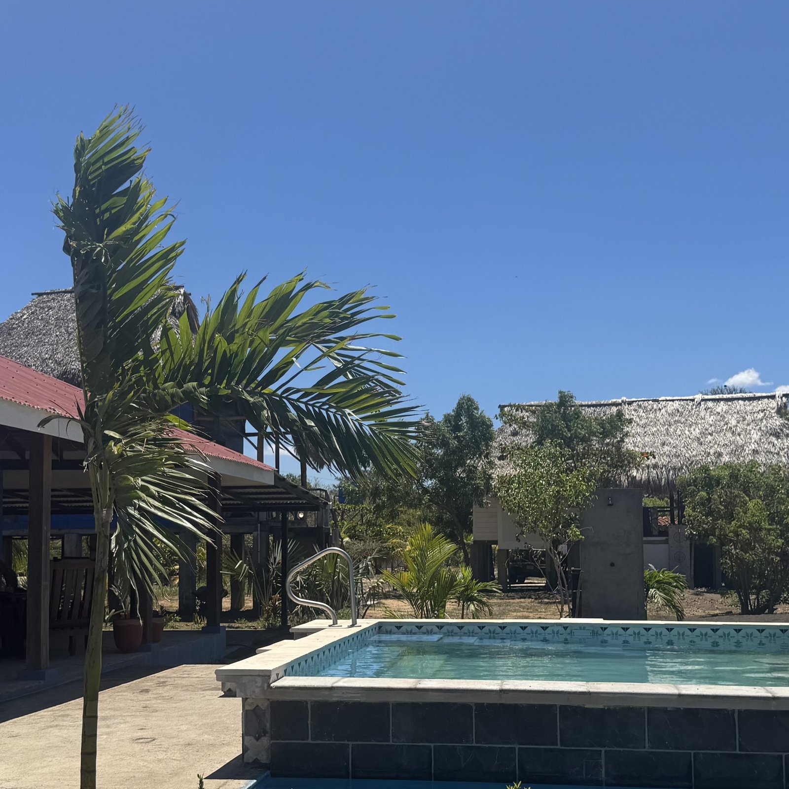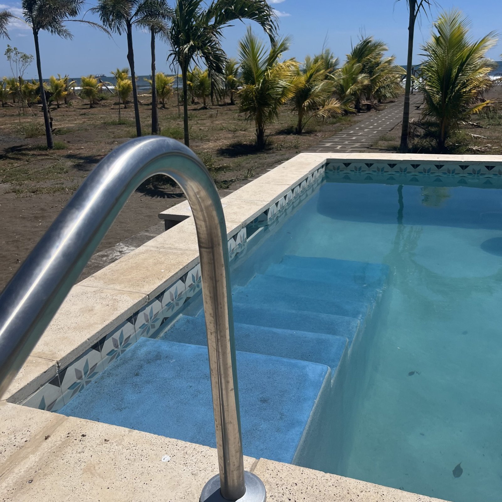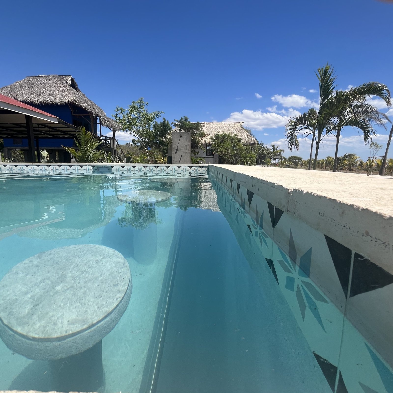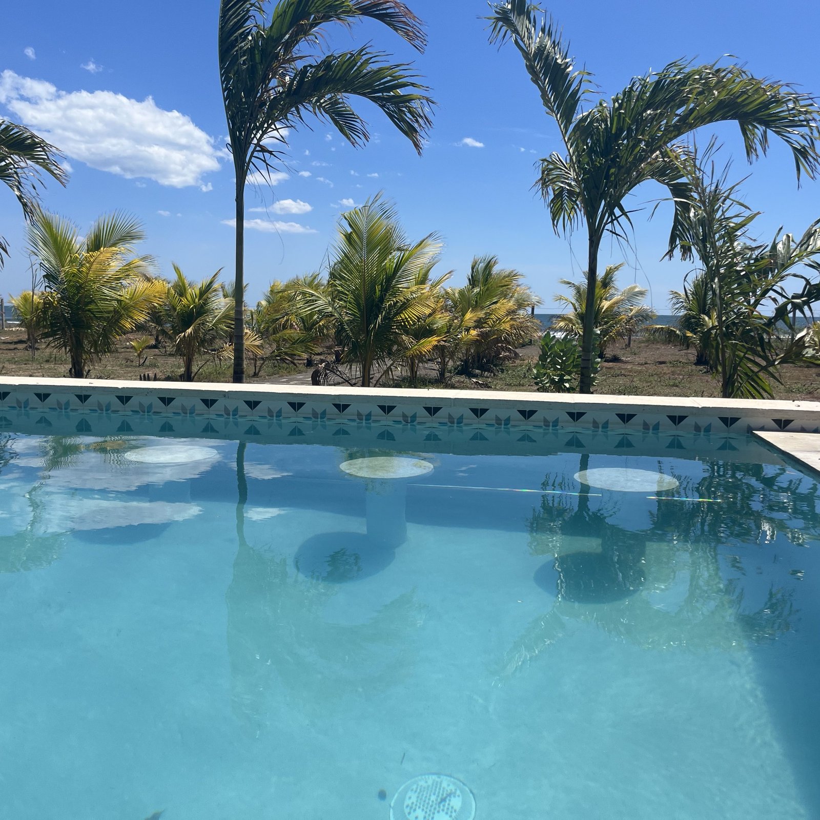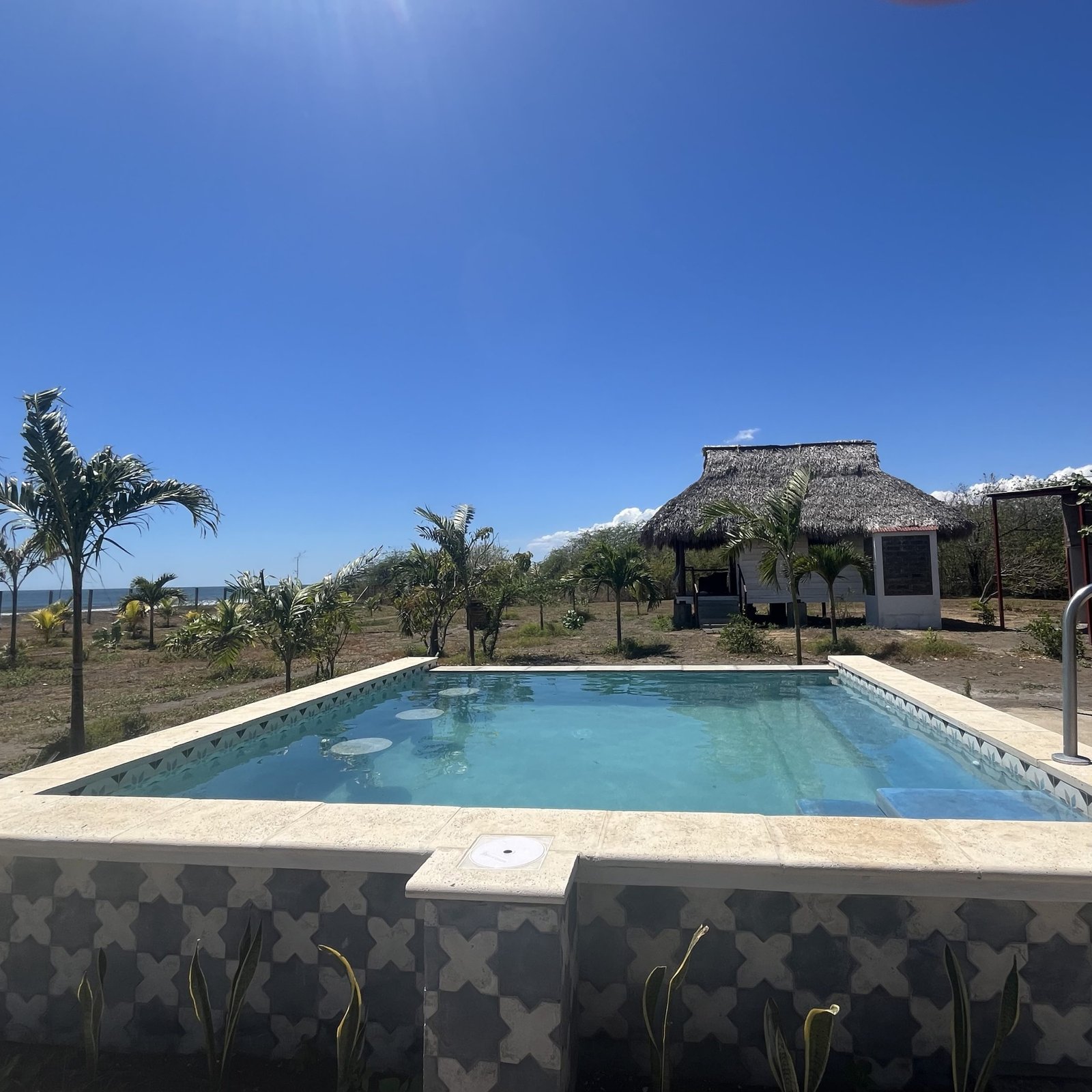 Welcome to Casa Azul — a charming western-style bungalow in Salinas Grandes, Nicaragua. This bright, open-plan retreat features a fully equipped kitchen, a comfortable living area, and two air-conditioned bedrooms. Step outside to a large shaded patio overlooking the beach and ocean, enjoy the privacy of your own newly installed pool, and relax beneath newly planted young trees that will grow to enhance shade and tropical ambiance. Ideal for 2–4 guests.